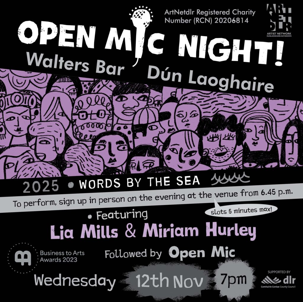 Lia Mills & Miriam Hurley are hosting the live Artnetdlr Open Mic ‘Words by the Sea’ this November!