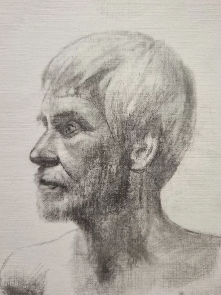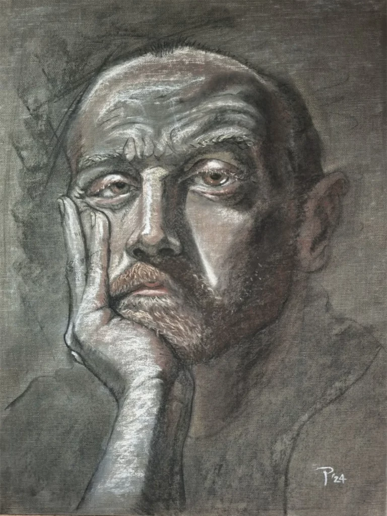 Charcoal, Conte Crayon, Pastel Pencil on Canvas Board